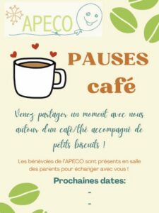 A chaque fois que les bénévoles de l’APECO arrivent dans le service elles sont bien accueillies, tant par les parents que par le personnel médical, les éducatrices et les institutrices. L’APECO est la seule association organisant ces moments privilégiés d’échanges avec les parents autour d’un café, d’un thé ou d’une boisson au sein du service.