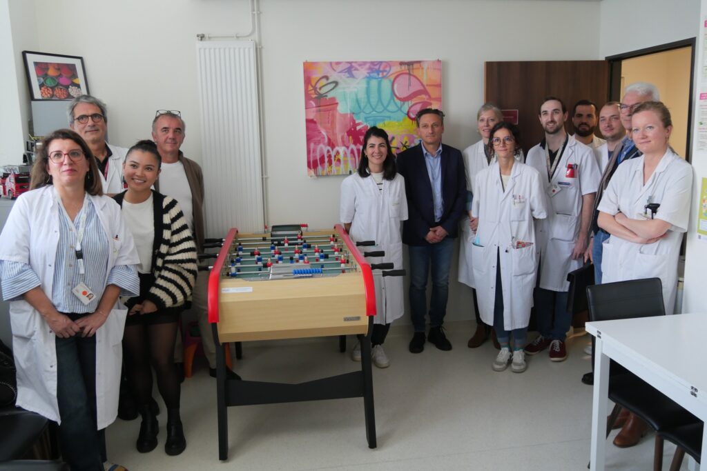 Suite à un don de parents et à leur demande, l’Apeco a pris en charge le réaménagement de la salle des familles du service hématologie pédiatrique. Nous avons remplacé le mobilier, fourni une nouvelle télé et remplacé la console de jeux.