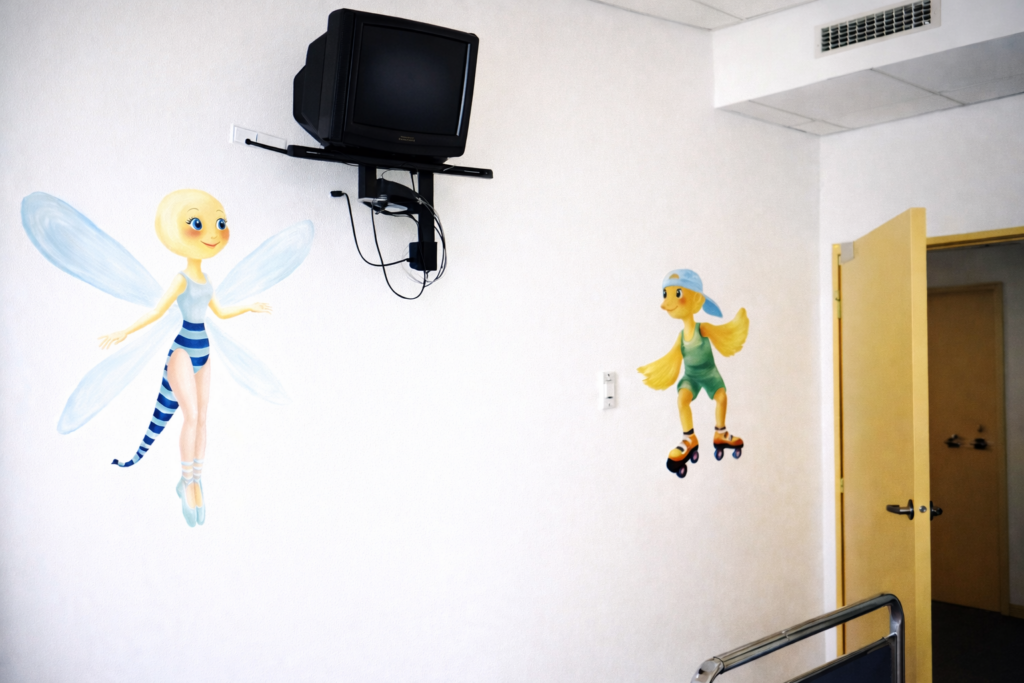 Les murs blancs de l’unité d’hématologie et de la salle des familles du service hématologie ont pris de la couleur. A l’initiative de l’Apeco, Sven et Yrak ont offert 3 peintures.